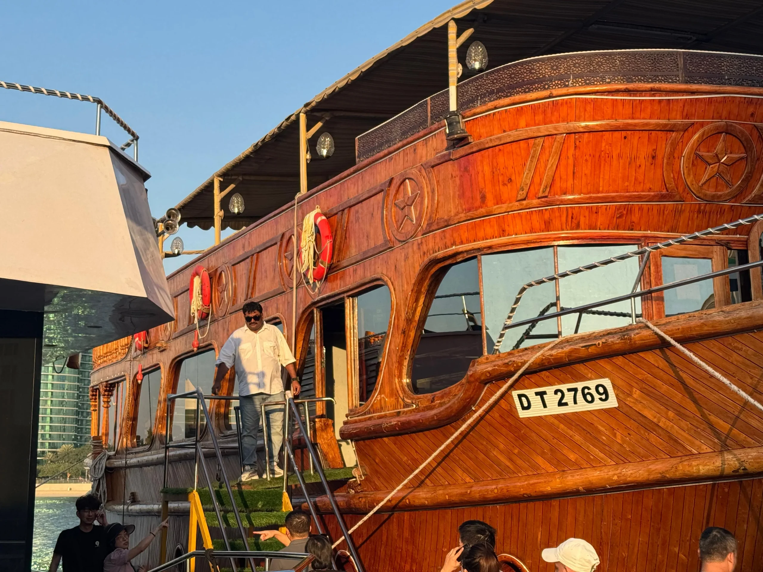 Guests will arrive at the dock and board the traditional Dhow. Upon boarding, enjoy a refreshing welcome drink as you settle into your comfortable seat, ready for an unforgettable experience.